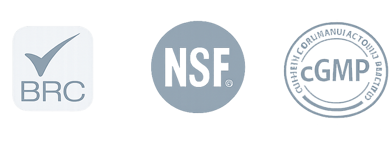 BRC, NSF, cGMP & HALAL Certified.